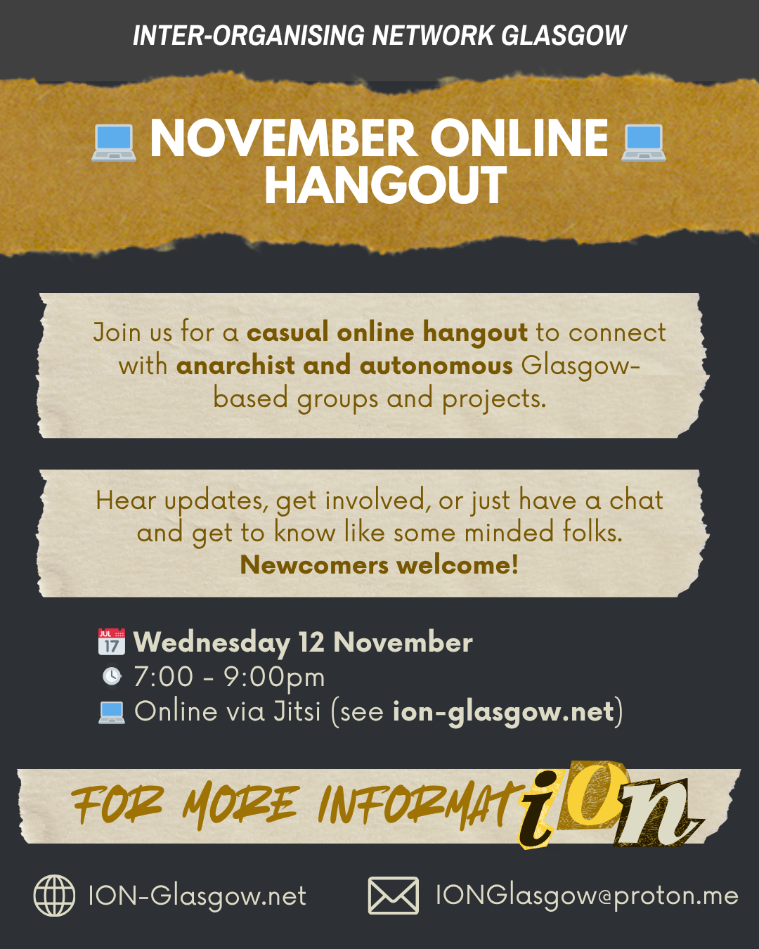 📅 Sunday, 02 November, 17:30 - 19:30 Connect with anarchist and autonomous Glasgow-based groups and projects: hear updates, get involved, or just have a chat. Bring a snack or just yourself. Newcomers welcome! When & Where• 📅 Sunday 2 November • ⌚ 5:30 - 7:30pm • 🌍 Glasgow Autonomous Space (GAS): Unit 9, Hollybrook Place, Glasgow, G42 7HB Accessibility Information• 😷 Please wear a mask (we will attempt to keep areas for eating separate to make mask-wearing practical, but please note that we have not tested that setup at GAS before). • ♿ Wheelchair access • 🍃 Air purification See the Glasgow Autonomous Space website for full details about the venue..png)